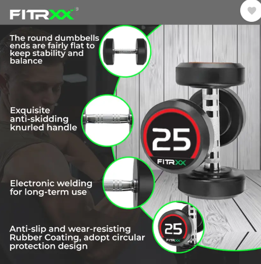 Maximize your power and build serious mass with the FITRXX 25kg Professional Rubber Bouncer Dumbbell Set. These high-quality dumbbells are designed for advanced lifters and professional athletes who demand durability and performance in every repetition.