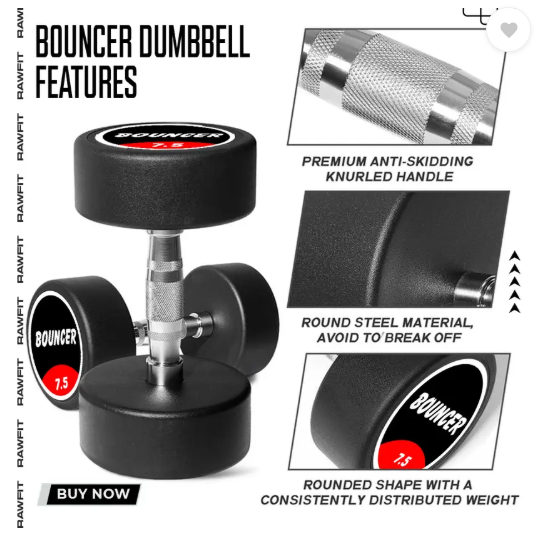 Build strength and tone your muscles with the RAWFIT 7.5 kg Professional Rubber Bouncer Dumbbell Set. This pair of high-quality dumbbells is the perfect mid-range weight for those looking to transition from light fitness to serious strength training. Designed with a professional “bouncer” build, they offer the perfect blend of durability and floor safety.